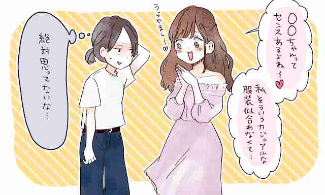 4. 「センスあるよね!」「私とは正反対のガーリー系の子が、『私そういうカジュアルな服装似合わなくて……。センスあって羨ましい~!』と褒めてきた」(20代/スポーツ関係)