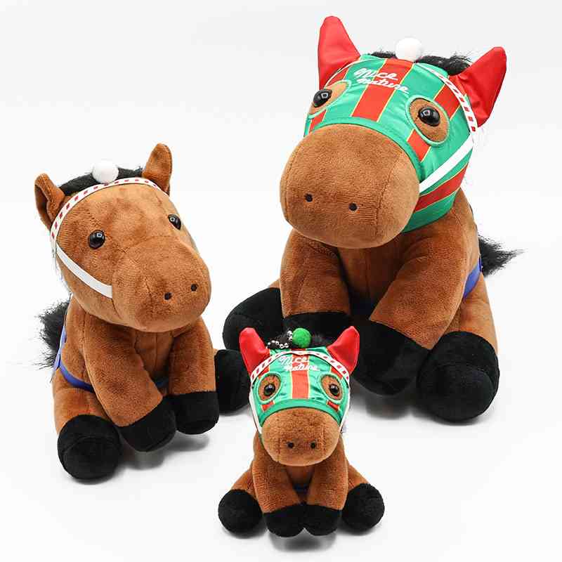 今日、ターフィショップにいったらナイスネイチャのアイドルホースぬいぐるみが発売されてました!有馬記念3年連続3着で、大きさが3つあってそれぞれの年の姿になってるのが可愛かった!Sサイズを買いました