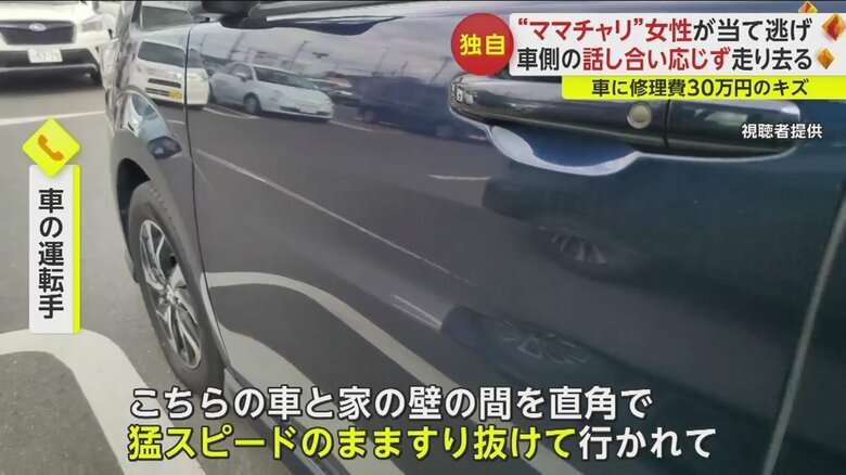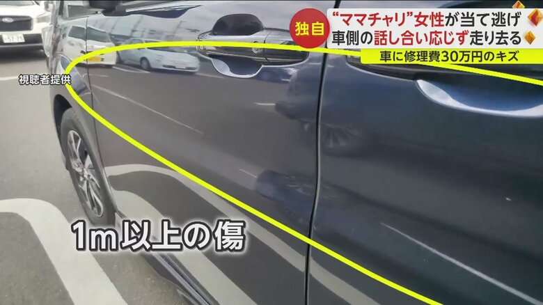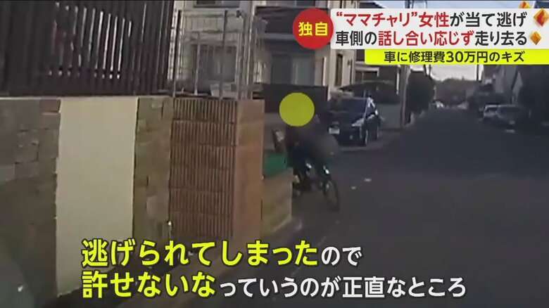 編集元: “ママチャリ”女性が当て逃げ 車側の話し合い応じず走り去る 車に修理費30万円の傷