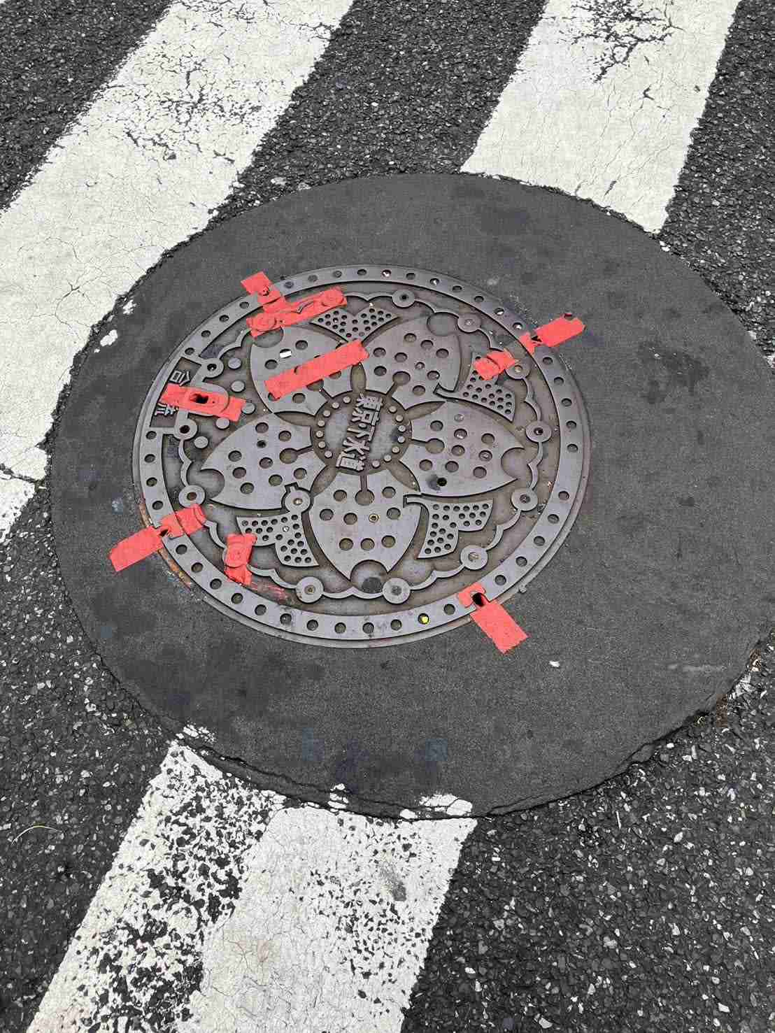 >この周辺のマンホールの穴をガムテープでふさぎました。穴をふさいだら危ないらしいですが、ゴキブリがわき続けるよりマシなので気にしてません!