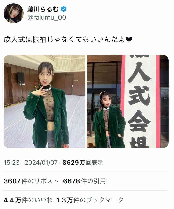 編集元: 成人式のスケスケ衣装で炎上した藤川らるむが経営者に…「下品すぎる」「TPOを考えて」と言われた藤川の1年後「TPOをわきまえた服装で商談を…」