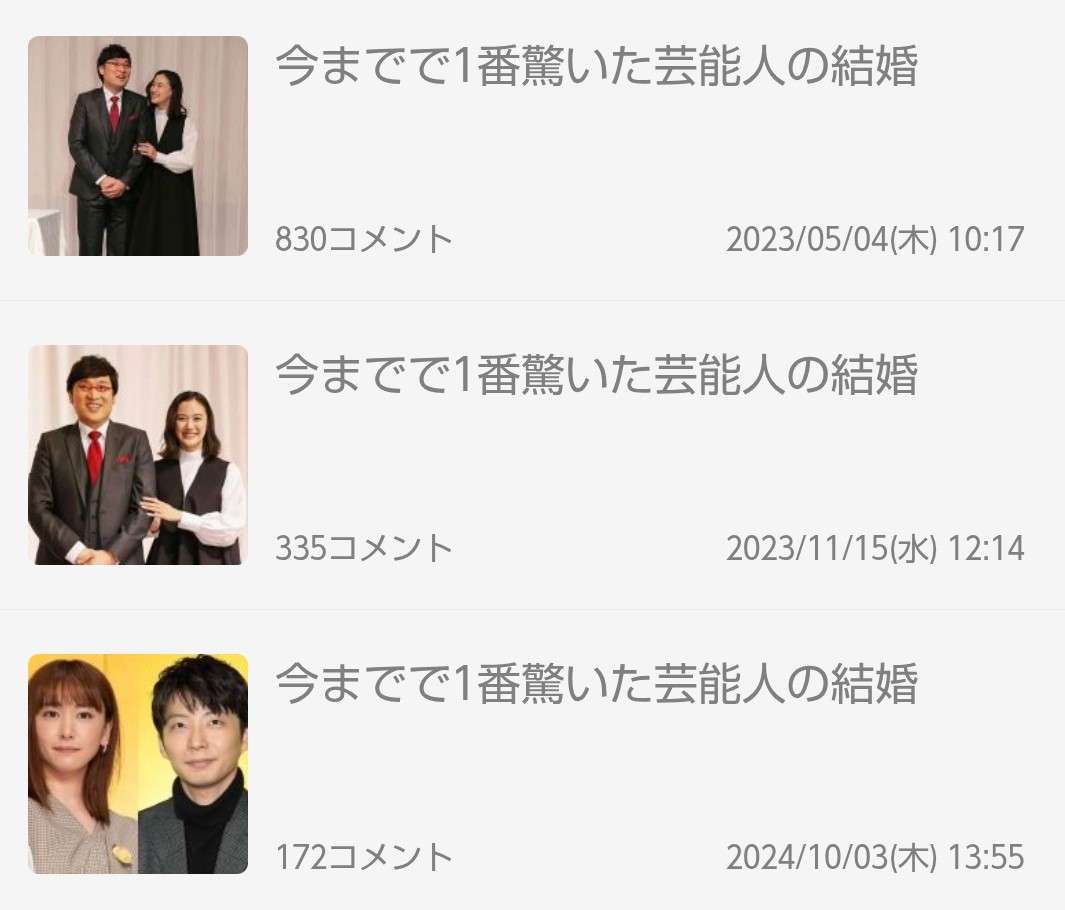 編集元: 1番驚いた芸能人の結婚