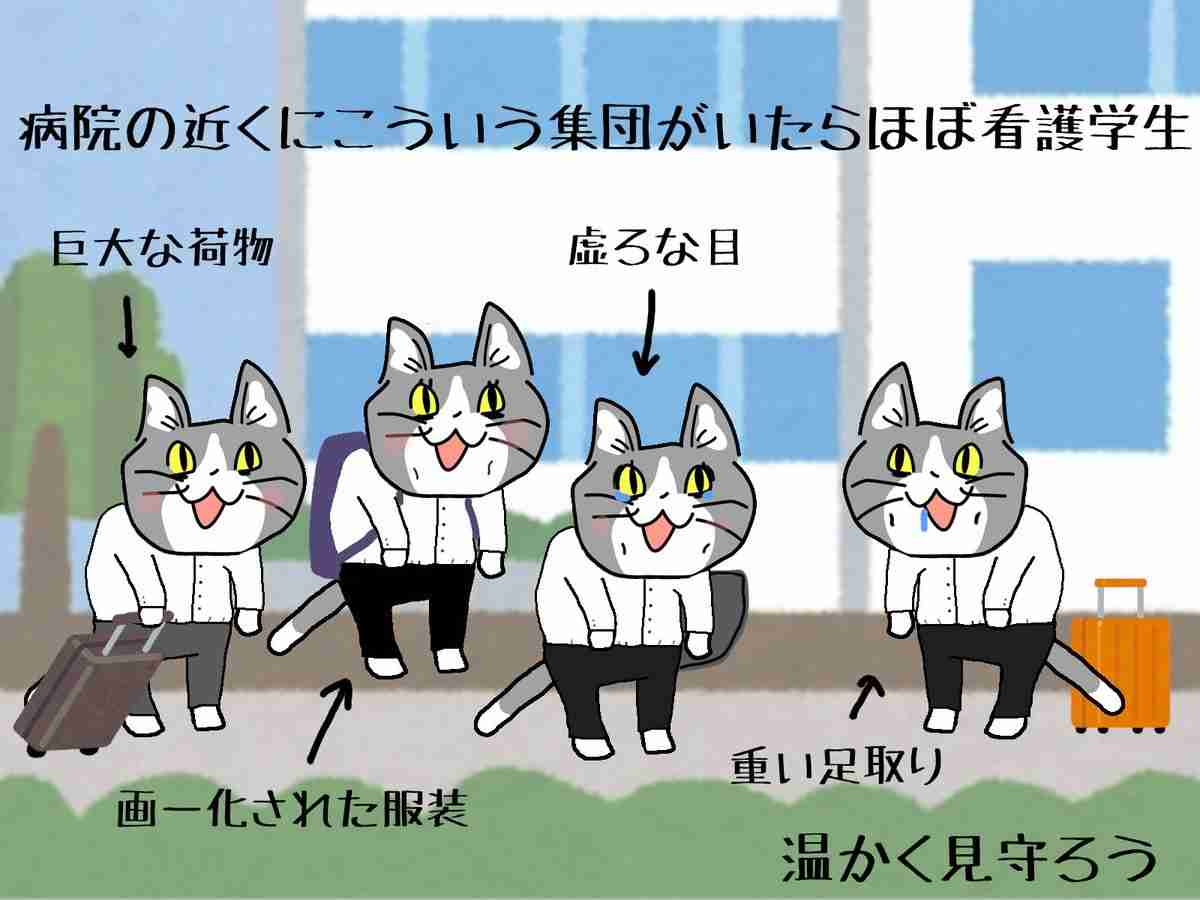 友達の娘さんが実習中こんな感じだったらしいから、この猫達凄く共感できる。