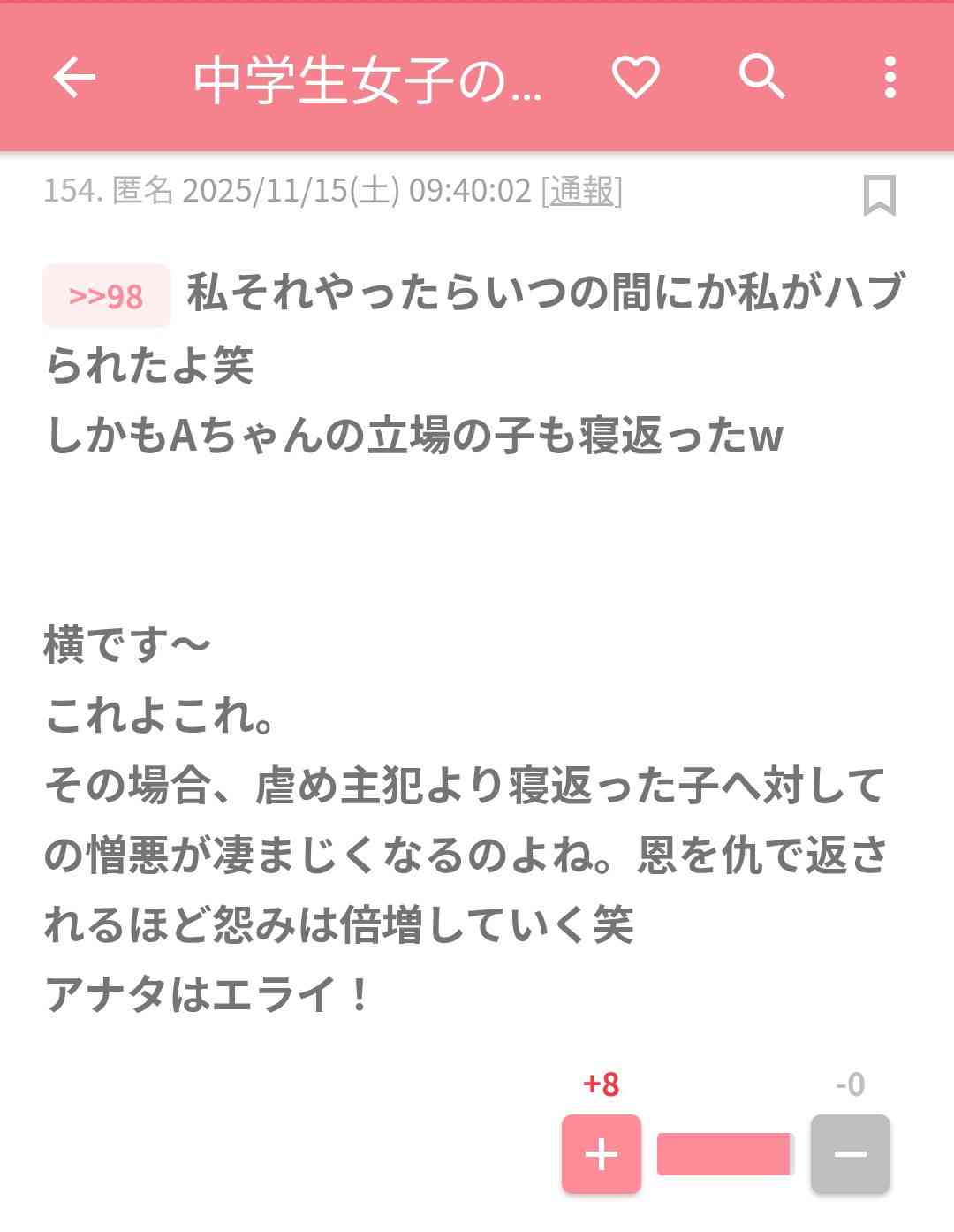 ハブられてた子は感謝どころか寝返って自分をハブってたヤツらと一緒にこちらをハブりだす。