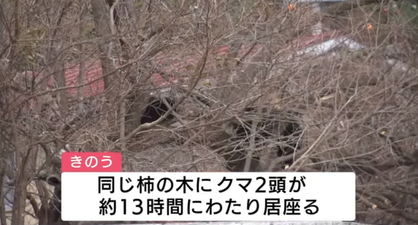 >2頭のクマが約13時間にわたり居座り続けていました。