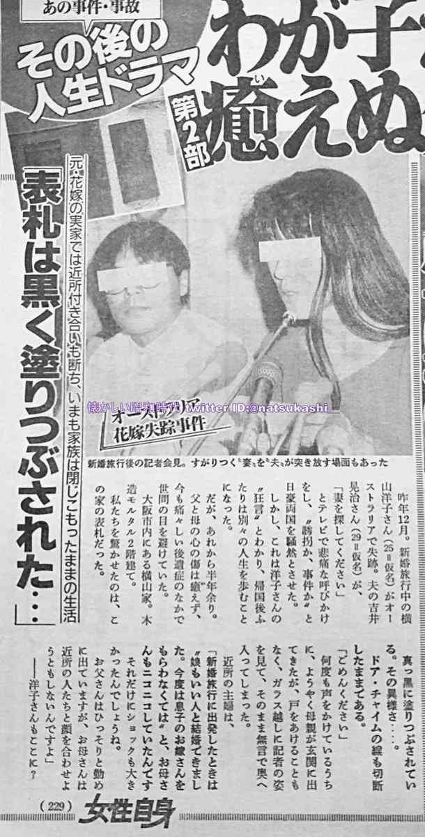 オーストラリアの不美人妻の失踪事件