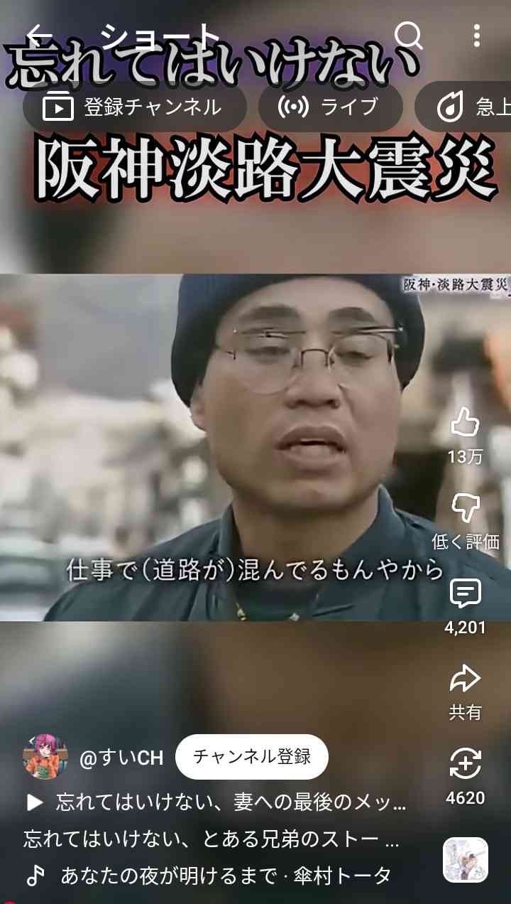 私も被災者なので、阪神大震災以後の災害に阪神大震災が活かされてる事が少しでも慰めになってると思ってる。