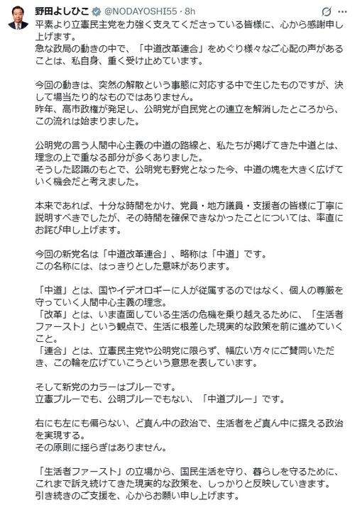 編集元: 野田佳彦代表、Xで「率直にお詫び申し上げます」「私自身、重く受け止めています」