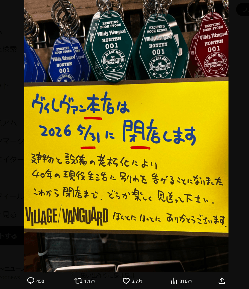 編集元: ヴィレッジヴァンガード本店が閉店発表…「ひとつの時代が終わるような気持ち」「さびしい限り」