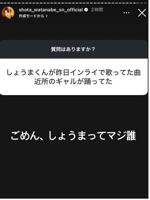 編集元: 「あーほ」「キモ」「どうせギャルが好きなんでしょ」SnowMan渡辺翔太へのインスタ質問箱が“失礼すぎる”と物議
