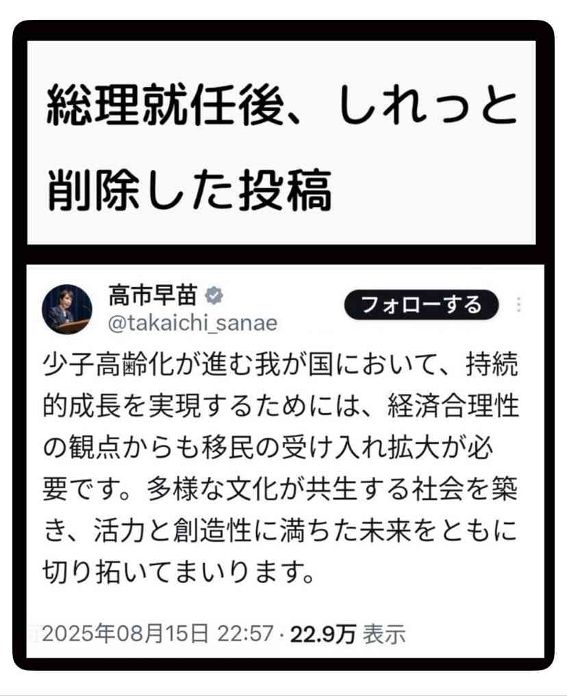 高市さんて元々移民推進派だったのね