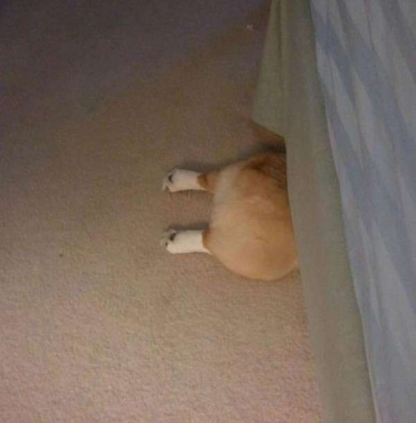 しかし、胴長のためかトイレシートに上半身だけ入ってる状態でトイレをしてしまいます。