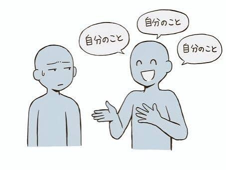 主の職場に中途採用で入ってきた方がいるのですが、初対面で挨拶したときに突然「私は〜で、それで私は〜」としばらく自分語りをされて、この人なんか嫌だな…と思いました。周りのみんなもそう思ったそうで、仕事以外の関わりは最小限にしています。