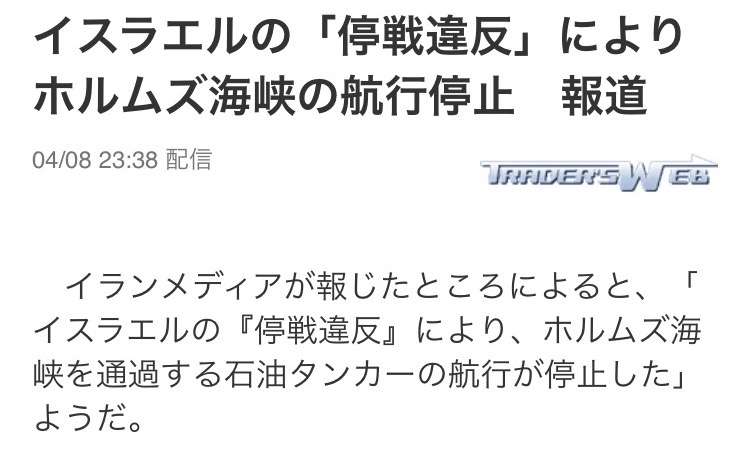 代替調達先のサウジのパイプラインも攻撃され、海峡封鎖も続きそうで、石油供給が大丈夫か心配です…